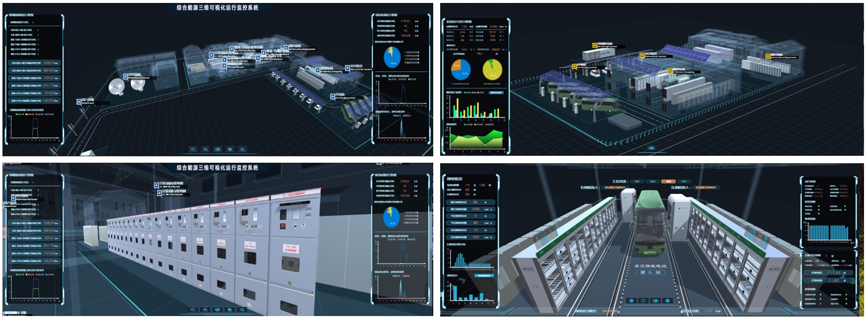數(shù)字孿生系統(tǒng)為電網(wǎng)、能源行業(yè)提供電力實時監(jiān)視數(shù)據(jù)的動態(tài)直觀呈現(xiàn)、核心設備的內(nèi)外部結構動態(tài)三維展示以及電網(wǎng)設備的互動模擬。并對系統(tǒng)運行狀態(tài)進行實時監(jiān)視,同時對系統(tǒng)性能指標進行同步刷新,采用圖形化表達方式對主要數(shù)據(jù)進行展現(xiàn),實現(xiàn)數(shù)據(jù)信息的遠程直觀動態(tài)呈現(xiàn)及系統(tǒng)間的信息互動,形成一個信息共享的展示平臺,體現(xiàn)三維可視化監(jiān)視區(qū)域內(nèi)的各個系統(tǒng)之間的關系,充分滿足系統(tǒng)遠端監(jiān)控與智能運維的可視化需求。采用三維虛擬仿真技術、虛擬互動技術、三維建模技術、實時數(shù)據(jù)采集技術、可組態(tài)圖表技術等,基于大屏幕互動顯示技術,對電網(wǎng)內(nèi)的多種能源形式、電網(wǎng)設備等進行詳細業(yè)務分析,并將新技術、新設備的優(yōu)異性能數(shù)據(jù)等在三維可視化系統(tǒng)中突出展現(xiàn)。全方位展示能源、電網(wǎng)、負荷之間的關系。系統(tǒng)的三維場景和操作界面設計以絕佳視覺展現(xiàn)效果為目標,依托大屏幕顯示技術,身臨其境的三維可視化展示與智能巡視等操作體驗。